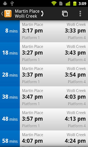 TripView displays Sydney train/bus/ferry timetables. Features: