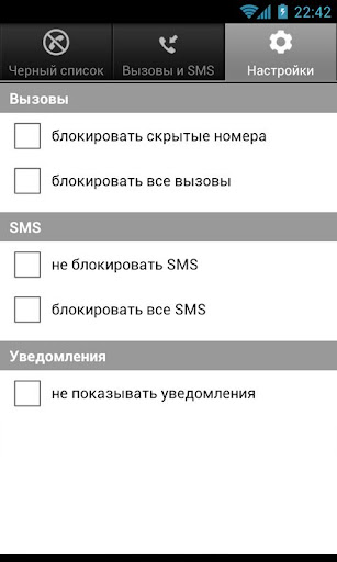 - Notification of blocked calls and SMS (can be disabled in the settings)