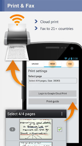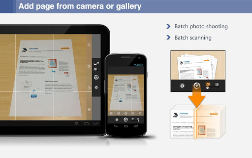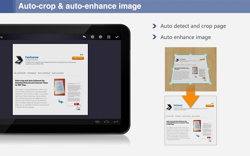 CamScanner turns your phone into a scanner and a fax machine. With CamScanner, you are able to digitize any paper documents by photo shooting. Simply take a picture of any paper documents such as receipts, whiteboards, notes, agreement and so forth, and CamScanner can auto-crop image, enhance image quality and create an industry standard PDF file. And the scanned documents can be shared via Email, faxed or printed via Internet, uploaded to cloud, and managed by tagging or searching.
