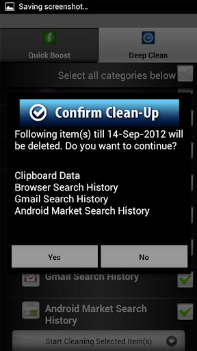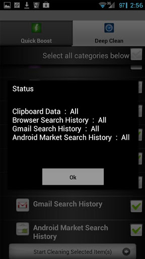 With ExtremeSpeed's Deep Clean mode, you can remove your phones call log history, text messaging, browser search history and much more. One simple screen will allow you to remove unwanted items that may be taking up space on your phone and slowing it down. This will allow you to reclaim more memory on your phone and improve its performance.