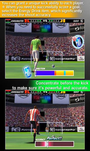 In contrast to the previous mobile kick games, PSYkick Battle is a 1:1 game that allows users to play with another player online in a realistic set-up that is reminiscent of an actual shoot-out in terms of techniques and ability to utilize the data on the opponent’s players.
