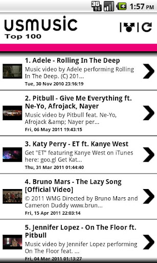 The US Music Chart gives you instant access to the TOP 100 music chart in the USA! + direct Youtube video