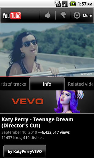 App includes direct Youtube link for instant play of your music videos. Note that some Youtube videos are not yet available for mobile use, as some music publishers do not support Youtube Mobile yet.