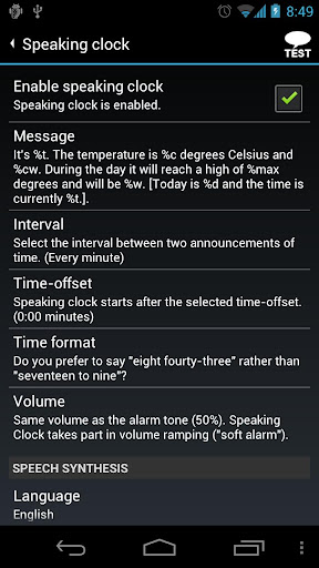 AlarmDroid's special feature is the flip'n'snooze feature, which allows the user to turn the alarm clock back into snooze mode by turning over the phone. Further, it provides a speaking clock, which does not only announce the time but even the local weather conditions.