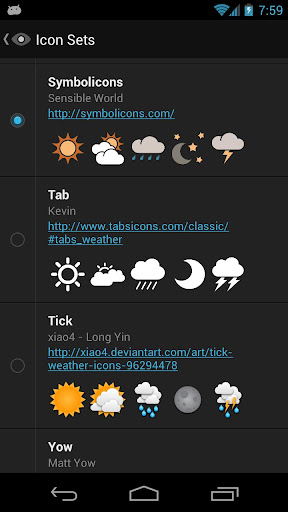 The app includes 12 of the best weather icon sets available, with the ability to add your own icon sets.