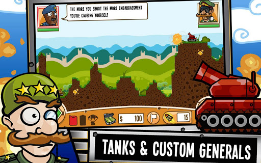Venture forth and conquer lands by engaging in 1-on-1 physics-based terrain battles. Grow your warbux as you conquer and unlock more powerful and devastating weapons, or customize your general's look and expand your tank collection.