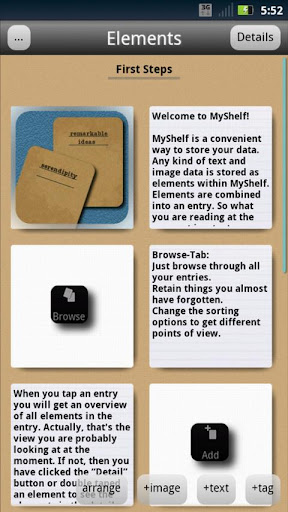 MyShelf is the personal shelf for notes, pictures, links, and text snippets. MyShelf is a powerful database app for many kinds of shelves within a single app: