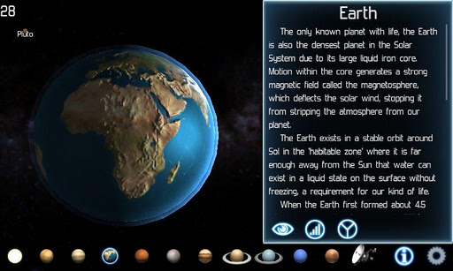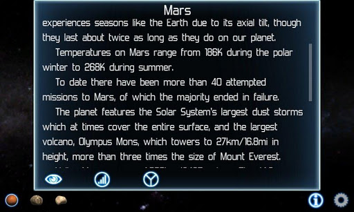 Interesting facts about each of the places you visit in the solar system, and the spacecraft you see are available at the touch of a button.